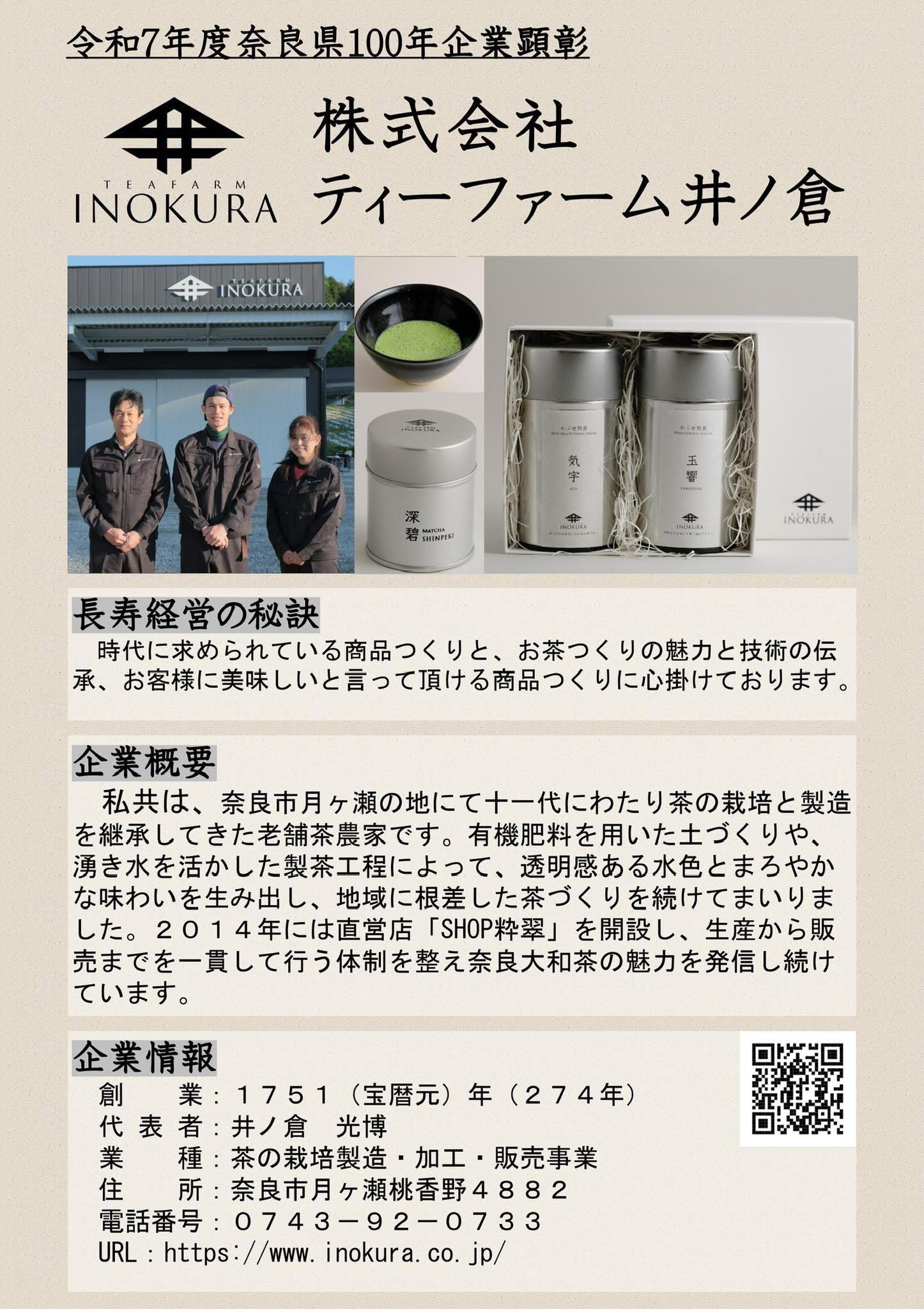 「奈良県100年企業顕彰」を受賞いたしました。